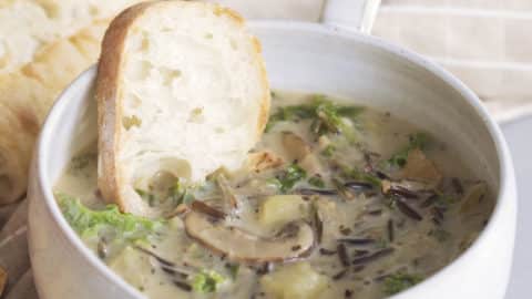這道湯的亮點除了超級食物野米跟羽衣甘藍之外,我覺得最好吃的部分就是煎到香氣十足、咬下去有肉感的蘑菇了!所以先把蘑菇煎香非常重要,蘑菇也不要切到太薄,有厚度吃起來口感很juicy。