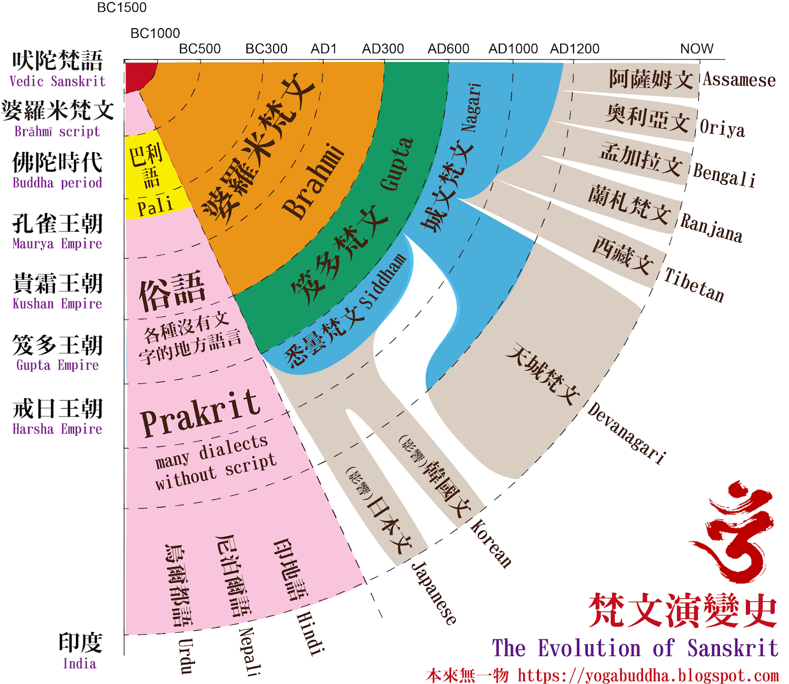 我們花了些時間把「梵文(Sanskrit)」和沒有文字的「俗語(Prakrit)」分清楚,所以替這篇文章做了修正(2017.08.14修正)。
