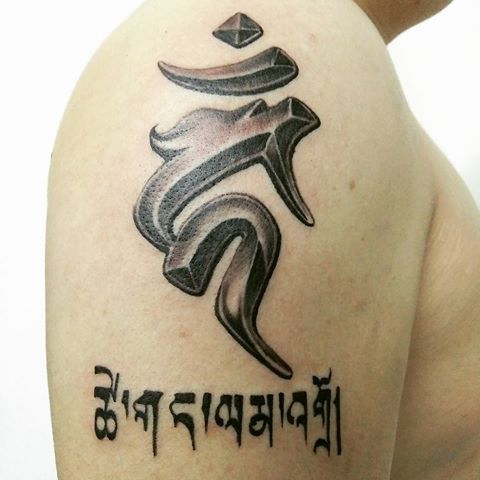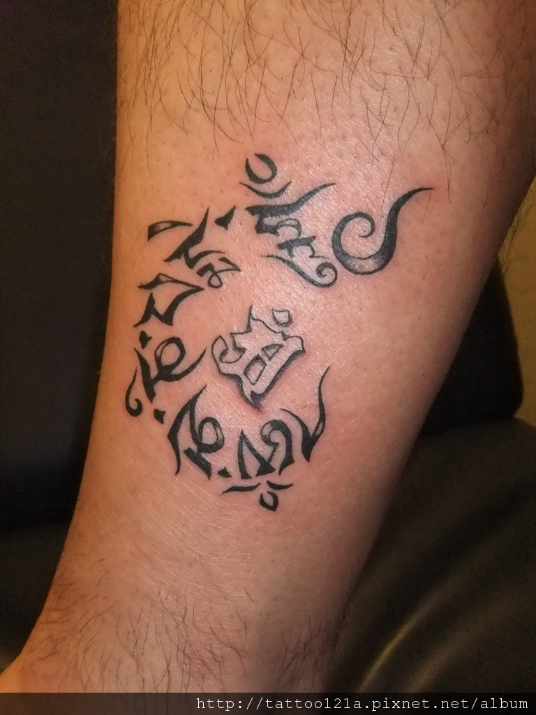 | 上面為寫錯字的悉曇hum,下面為藏文刺青 |