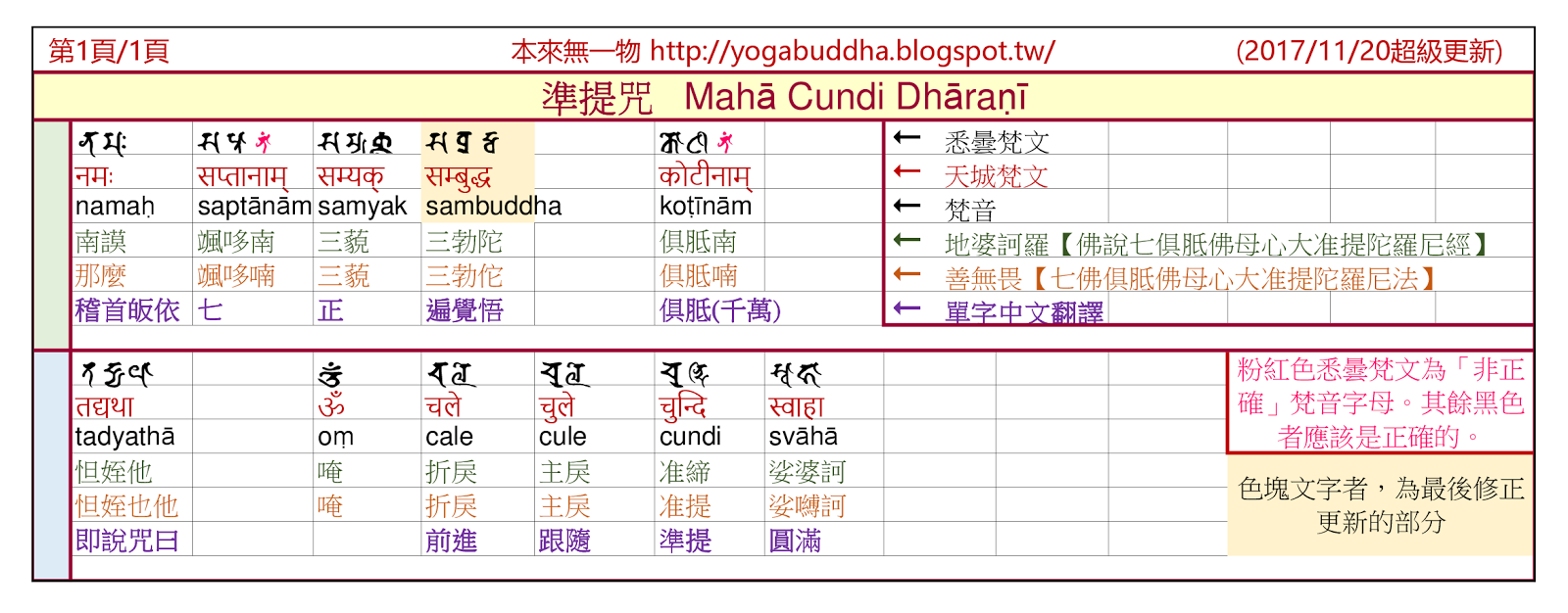 要特別注意的是「buddha」的「dha」,並不是念為「da」!「tadyathā」的「thā」並不是念為「tā」!